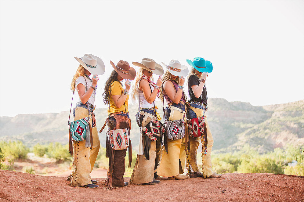 Fully lined with one large pocket, zipper closure Hand laced fringe, vintage laundry pin, horse hair tassel shoo-fly and hand studded adjustable 50”crossbody rein strap. 9”W x 10”D